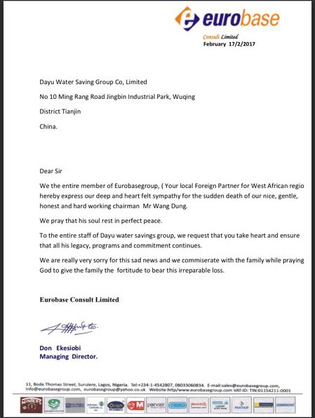 尼日利亚客户唁电