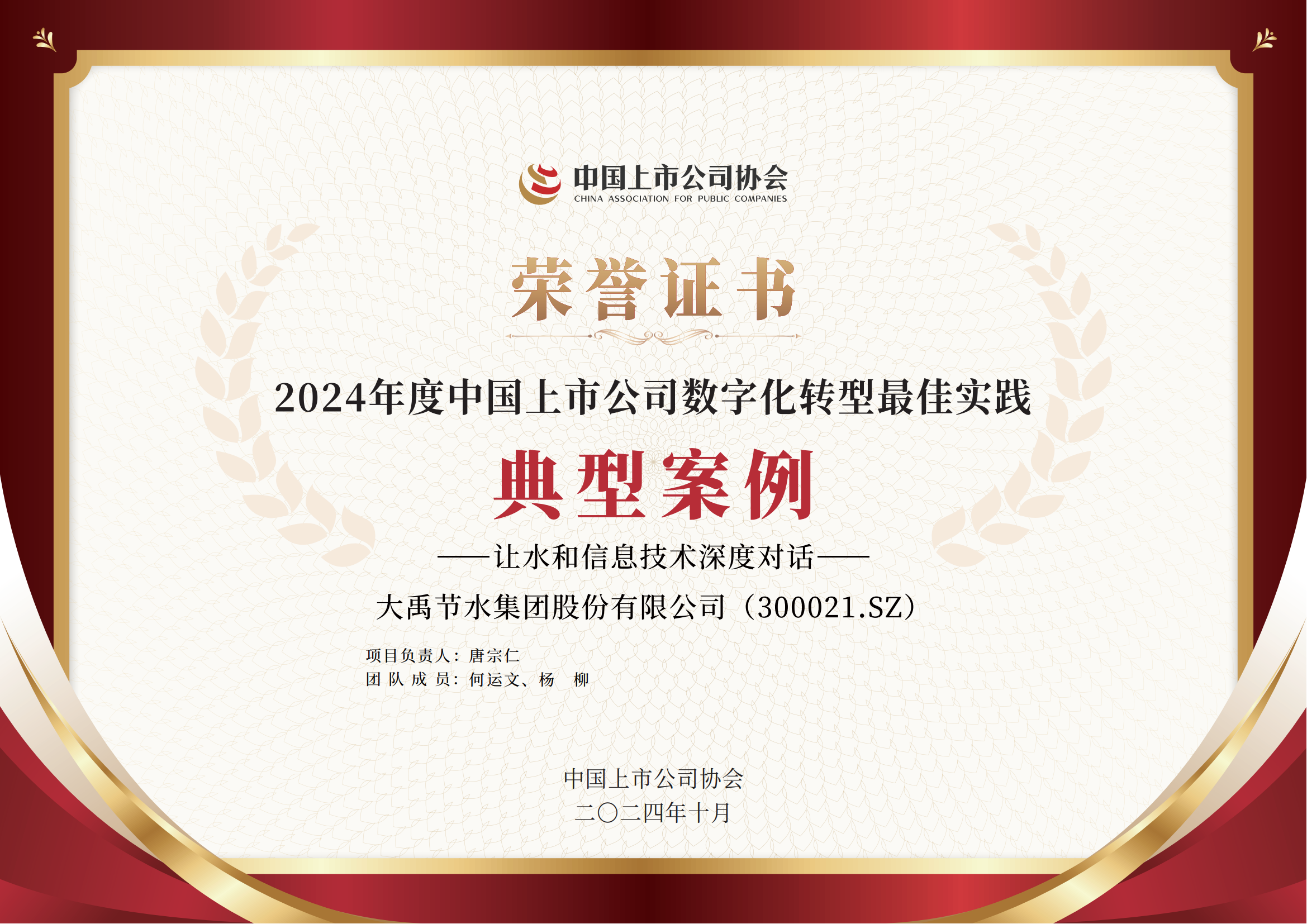 新宝gg节水集团一连两年获得《上市公司数字化转型最佳实践典范案例》。 。。。。 。