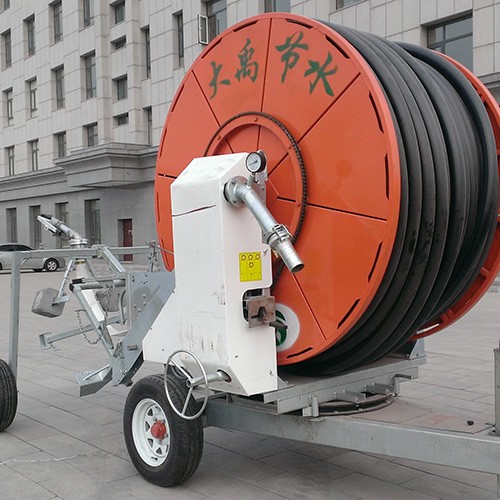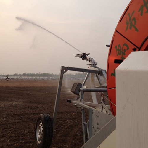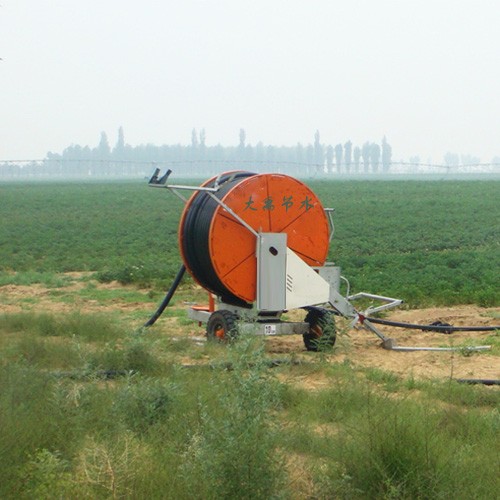 卷盘式喷灌机是一种将牵引PE管纠葛在绞盘上 ,,,,,使用喷灌压力水驱动水涡轮旋转 ,,,,,经变速装置驱动绞盘旋转 ,,,,,拉动喷头车移动和喷洒的浇灌装备。。。。。