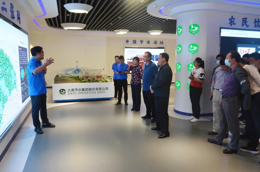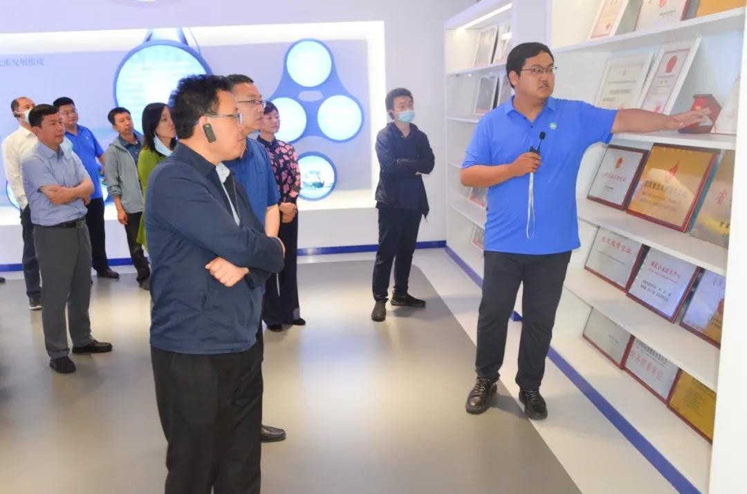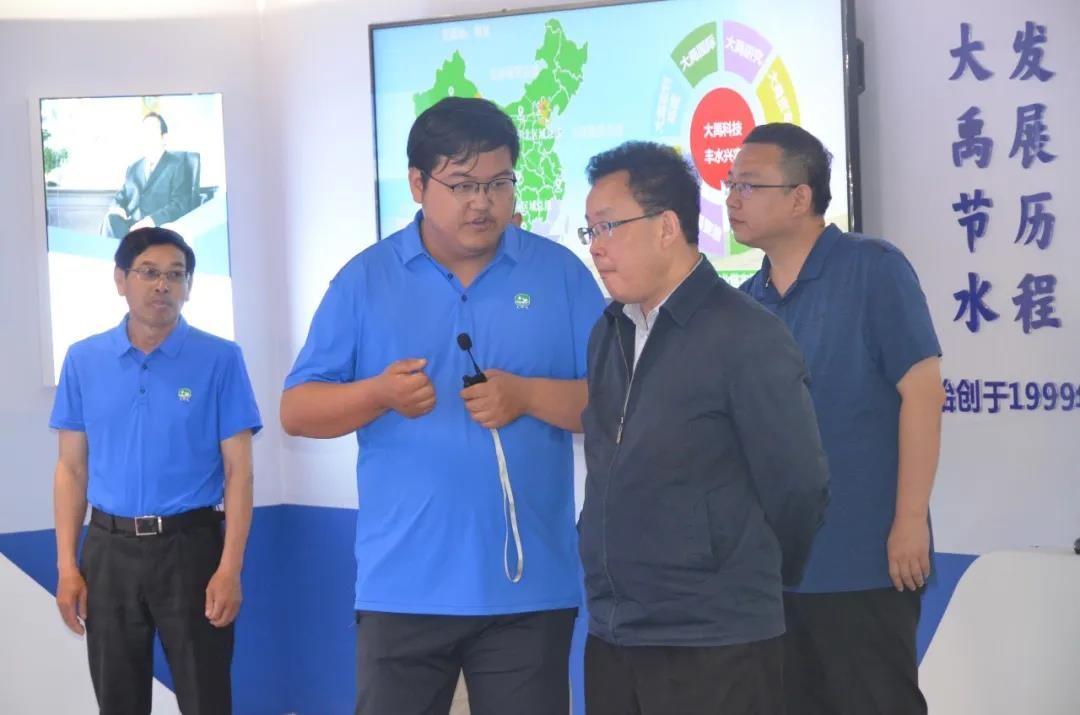 杨琦一行来到公司展厅,,,,,,王浩宇董事长从企业首创人王栋生平、生长历程、使命愿景、声誉奖项、党建事情等方面举行了详细先容;;;;;新宝gg节水致力于“三农三水”营业全工业链能力建设,,,,,,为国家墟落振兴战略效劳,,,,,,践行“让农业更智慧、让农村更优美、让农民更幸福”的企业使命。。。。。。。