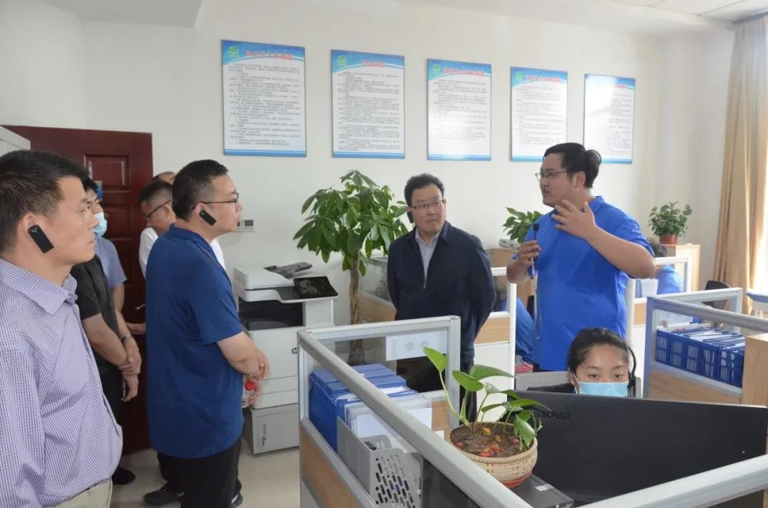 王浩宇向杨琦一行先容公司“三农三水”营业生长情形,,,,,,公司营业模式获得政府、社会普遍认可,,,,,,并一直在天下推广复制。。。。。。。