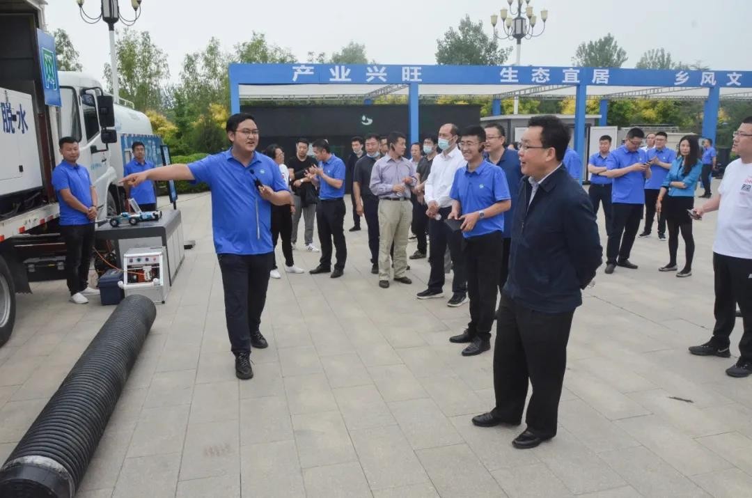 在新宝gg节水农村人居情形整治展示区域,,,,,,杨琦一行详细相识了农村污水处置惩罚的州产品、工艺原理,,,,,,污泥脱水车、管道洗濯车、管道机械人等种种专业化、智能化运维工具装备以及认真线上线下运维治理的运营效劳团队;;;;;充分展现了公司焦点工艺手艺研发装备制造能力和智慧运维效劳能力。。。。。。。
