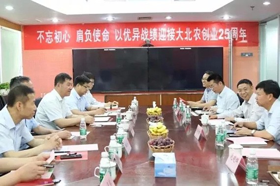 新宝gg节水集团公司总裁谢永生对大北农集团总部和农信总部举行了旅行,,,,,,寓目了大北农集团企业宣传片,,,,,,听取了副总司理徐万涛对大北农集团的详细先容。。。。。。。。并现场与徐万涛副总司理举行了深入交流。。。。。。。。