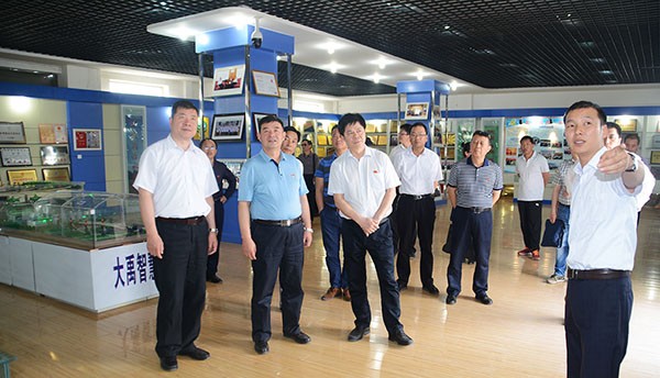 ▲调研组一行在新宝gg节水集团公司综合展厅考察调研