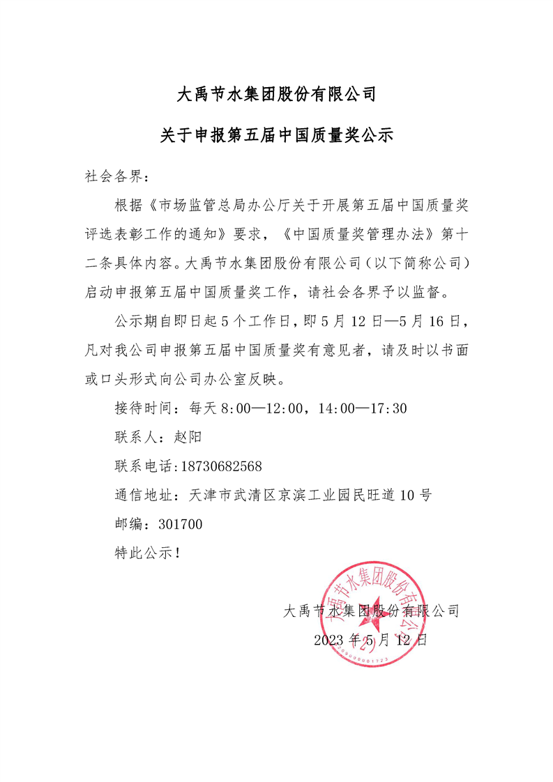 新宝gg关于申报第五届中国质量奖公示