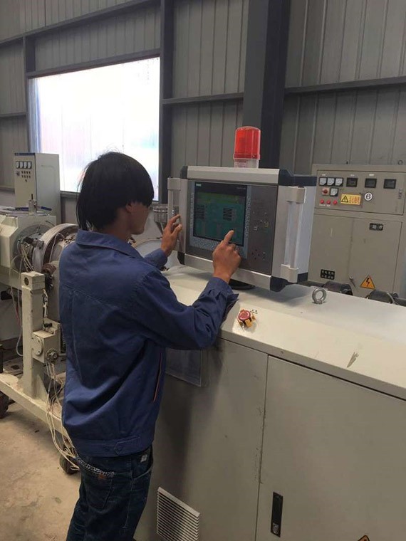 ▲生产工厂同事正在调试装备,,,,,,,力保生产把质量,,,,,,,为工程一线同事提供富足的管材包管