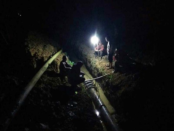 ▲他们是最甘于默然的劳动者,,,,,,,是新宝gg精神的传承者,,,,,,,守着恒心,,,,,,,一辈子只做好节水这一件事,,,,,,,字斟句酌,,,,,,,一丝不苟,,,,,,,项目部同事挑灯继续施工,,,,,,,力保工程进度