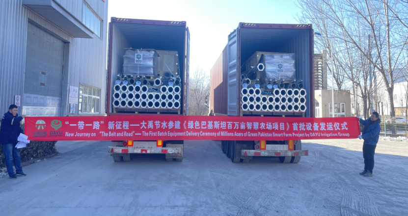 1月23日,,,,,,,新宝gg节水集团参建的《绿色巴基斯坦百万英亩智慧农场项目》首批装备完成装箱起运。。。。。。新宝gg巴基斯坦独家经销商总裁与新宝gg节水国际事业部副总司理符帅先生加入本次发运仪式。。。。。。