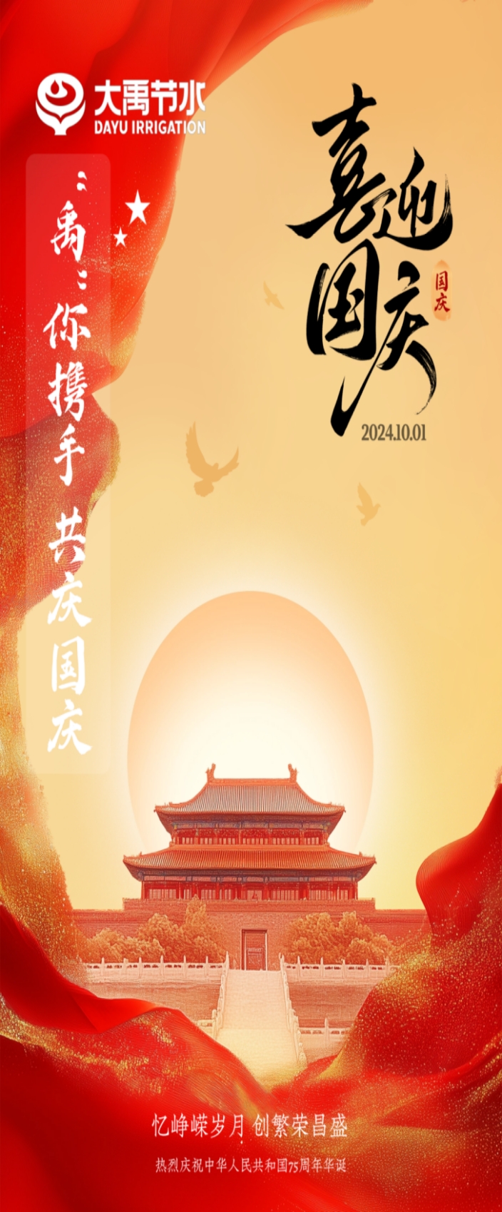 谢永生总裁代表集团祝愿伟大祖国昌盛郁勃,,,,,,,,祝福新宝gg节水集团事业更上一层楼,,,,,,,,并向节日时代坚守岗位的员工体现高尚的敬意。。。。。。。他体现,,,,,,,,自新中国建设以来,,,,,,,,中国共产党团结向导天下各族人民,,,,,,,,砥砺前行,,,,,,,,实现了从站起来、富起来到强起来的伟大奔腾。。。。。。。我们生在红旗下,,,,,,,,长在春风里,,,,,,,,要心怀感恩,,,,,,,,为祖国的昌盛郁勃添砖加瓦,,,,,,,,为实现中华民族的伟大再起而不懈起劲。。。。。。。