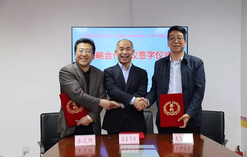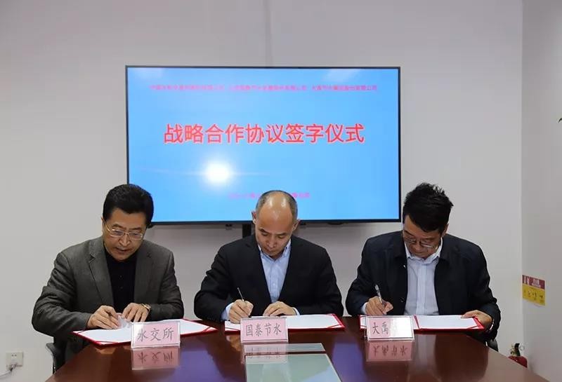 3月20日,,,,,,新宝gg与中国水权生意所、北京国泰节水生长股份有限公司在京签署战略相助协议。。。。。。。新宝gg节水集团党委书记王冲、中国水权生意所董事长石玉波、北京国泰节水公司董事长杜国志代表三方在战略相助协议上签字。。。。。。。
