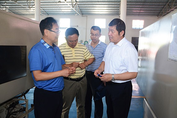 现场考察竣事后,,,,,,张功行长一行与集团公司总裁谢永生、总裁助理巨飞雷、宋金彦在公司三楼聚会室举行了座谈。。。。。。集团公司总裁谢永生对农刊行恒久以来对公司的体贴与支持体现真挚谢谢,,,,,,并向张功行长一行详细先容了公司产品研发、生产谋划、工业结构等相关情形,,,,,,重点先容了公司一直拓展生长空间,,,,,,培育企业生长新增添点的妄想情形。。。。。。希望能与农刊行深化交流相助,,,,,,建设更为稳固融洽的银企相助关系。。。。。。