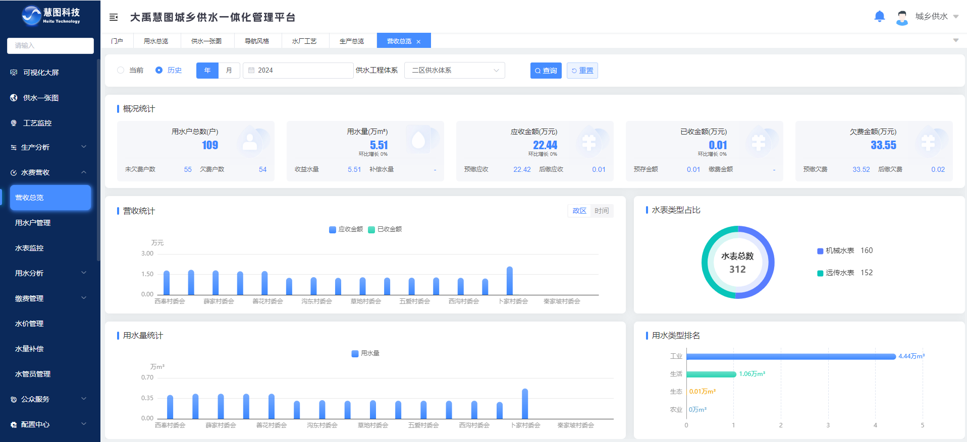 ͨ¹ýÐÂÒ»´úÐÅÏ¢ÊÖÒÕÓëË®ÀûÓªÒµÉî¶ÈÈںϣ¬£¬£¬£¬£¬£¬£¬£¬ÊµÏÖ¹©Ë®ÏµÍ³µÄÊý¾Ý×ÊÔ´»¯¡¢ÖÎÀí׼ȷ»¯¡¢¾öÒéÖǻۻ¯¡£¡£¡£¡£¡£¡£¡£ÒÔÊý¾Ý¼ÝÊ»²ÕµÄ·½·¨Ö±¹Ûչʾ³ÇÏ繩ˮһÌ廯¹¤³ÌµÄÖÆË®¹¤ÒÕ¡¢Ë®Á¿¡¢Ë®ÖÊ¡¢Äܺġ¢¹©Ë®ÔËά¡¢ÊµÊ±±¨¾¯¡¢ÊÓÆµ¼à¿Ø¡¢Â©Ëðî¿Ïµ¡¢¹¤³ÌÂþÑܵÈÖ¸±êºÍÐÅÏ¢¡£¡£¡£¡£¡£¡£¡£´ËÄ£¿£¿£¿£¿£¿£¿£¿éÖ÷Òª°üÀ¨Ë®·ÑÓªÊÕÆÊÎö¡¢ÖÇ»ÛË®³§¼à¿Ø¡¢¹©Ë®¹¤³ÌϵͳÆÊÎö¡¢Éú²úµ÷ÀíÆÊÎöµÈ¡£¡£¡£¡£¡£¡£¡£