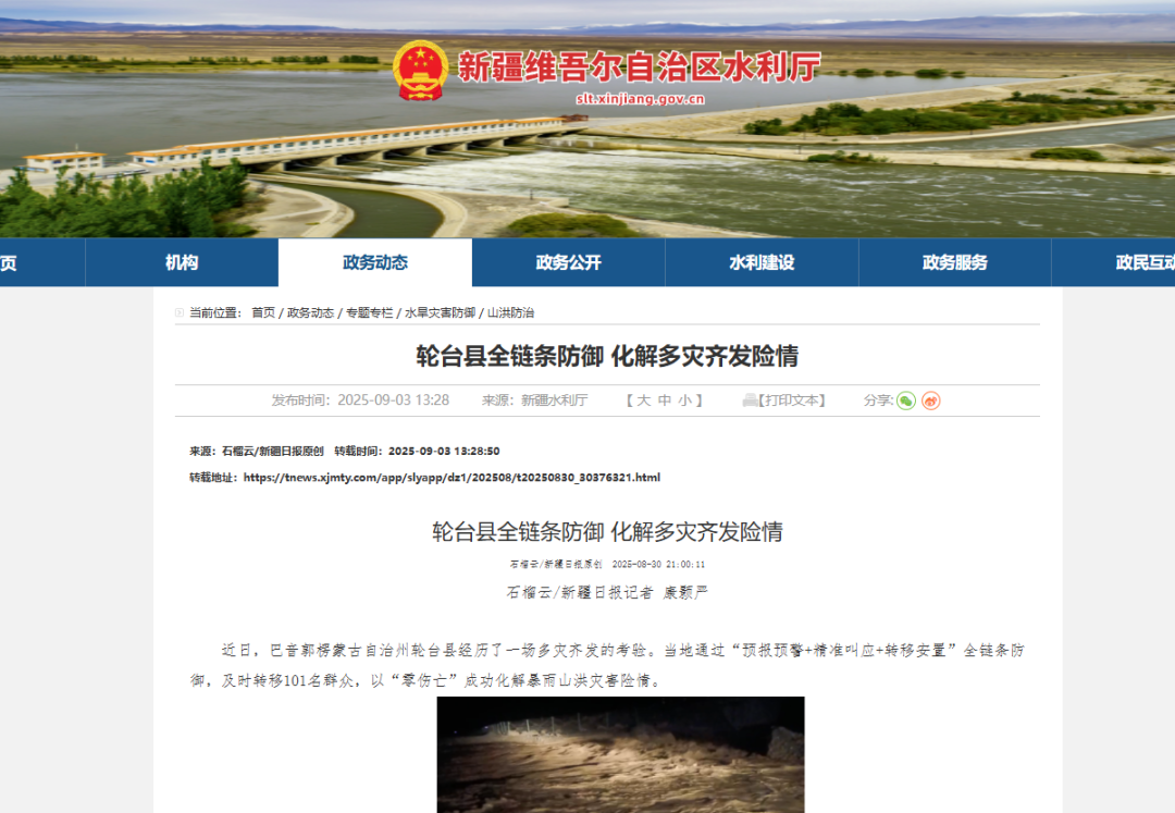 2025年8月20日破晓,,,,,,巴音郭楞蒙古自治州轮台县遭遇“短历时、高强度”极端降雨。。。。。。5分钟降雨量18.6毫米,,,,,,1小时最大雨强60.9毫米,,,,,,强降雨快速汇成