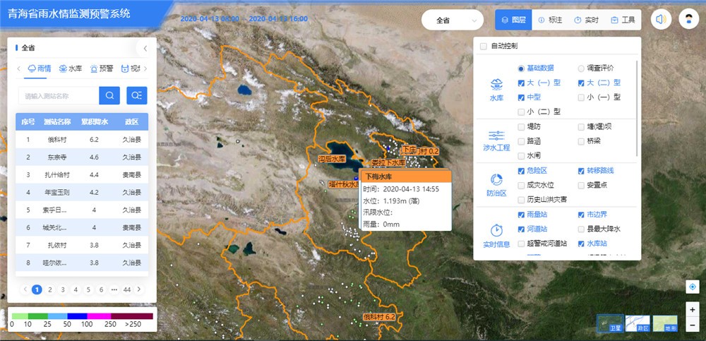 基于水利一张图,,,,,,,,叠加全省雨情、水情、预警(提醒)、灾情信息,,,,,,,,实现山洪灾难防御要素的实时监控和展示,,,,,,,,周全支持水旱灾难防御智能应用营业。。。。。。。。